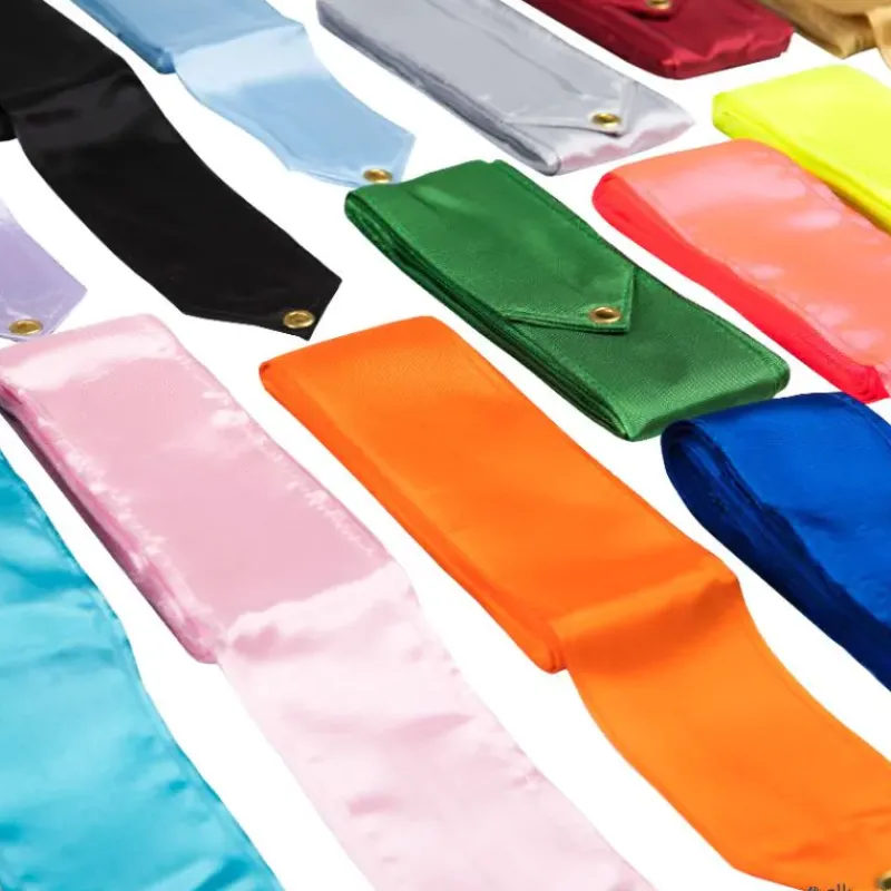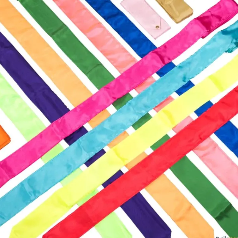 Cinta para gimnasia rítmica de entrenamiento fabricada en satén de máxima calidad, muy ligera. Todas las cintas incluyen varilla de 60 cm con mango antideslizante.