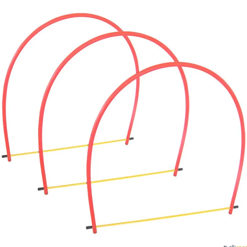 Juego de 3 arcos sumergibles con base lastrada que les permite permanecer rectos en el fondo de la piscina para realizar recorridos buceando.