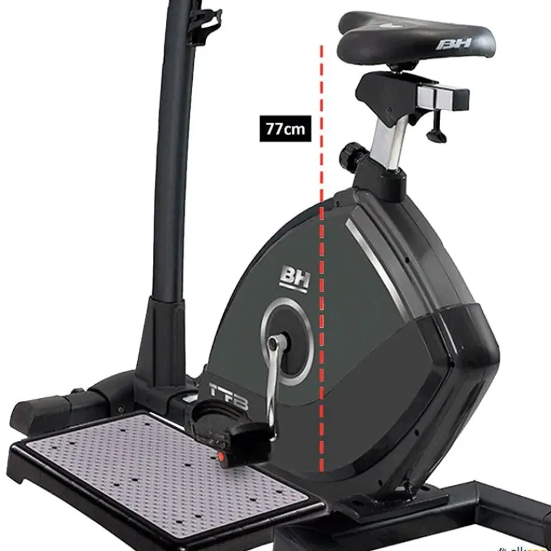 Bicicleta estática de la marca BH diseñada para uso semiprofesional (más de 20 horas semanales). Gracias a su diseño de cuadro abierto y a la altura rebajada del sillín, hacen de este bicicleta estática una herramienta ideal para sesiones de rehabilitación, además incluye un step de acceso que permiten un acceso directo y sin obstáculos a la máquina. Pedaleo suave y fluido debido a su volante de inercia de 14 kg y a un sistema de resistencia magnética.