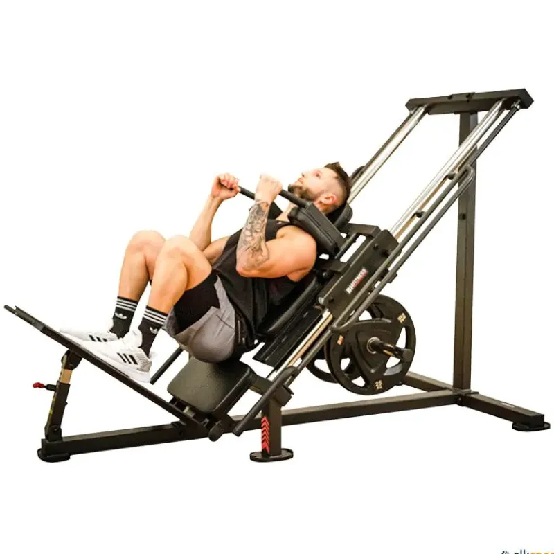 El ángulo se puede ajustar acorde a la estatura del usuario. Se puede cambiar fácilmente entre sentadilla y prensa de piernas para ofrecer un entrenamiento de pierna completo. Es una maquina ideal para entrenamientos con altas cargas (hasta 200 kg) y mínimo riesgo. Acolchado de espuma de polímero de primera calidad para el entrenamiento de prensa de piernas. No incluye discos.