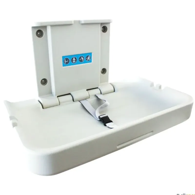 Cambiador de bebés horizontal fabricado en polietileno de alta densidad acorde normativa EN12221: 2008 + A1: 2013. Fácil de limpiar. Cinturón de seguridad ajustable con una sola mano. Sistema neumático de apertura y cierre.