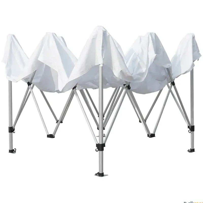 Carpa plegable de calidad profesional con estructura de aluminio reforzado y patas hexagonales para darle una mayor estabilidad. Tejido ignífugo poliéster 450 g/m² 100% impermeable. Incluye bolsa con ruedas para transporte, cuerdas y piquetas.