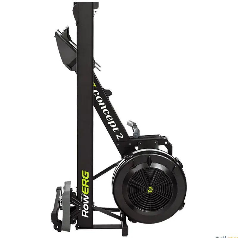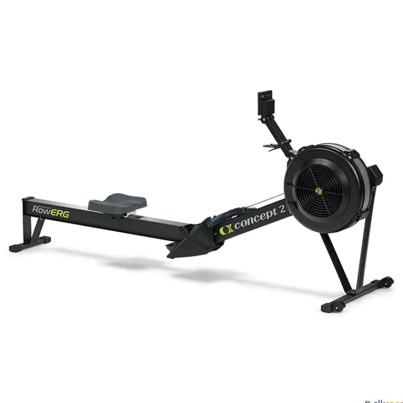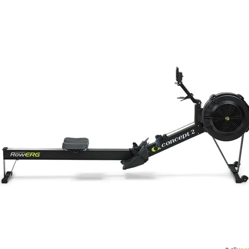 El RowErg Concept2 es una máquina de ejercicio de remo profesional con un ventilador de resistencia de aire, un asiento deslizante y un monitor de rendimiento electrónico auto-calibrante.
