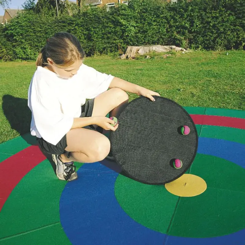 Además de la diana también se puede trabajar la precisión con el círculo de velcro negro, el cual se puede desplazar y colocar en cualquier lugar de la diana, para variar la actividad y hacer este producto uno de los más versátiles. Incluye 9 círculos de velcro numerados del 1 al 9, que puedes colocar en el lugar que desees de la diana para crear nuevos juegos y actividades.