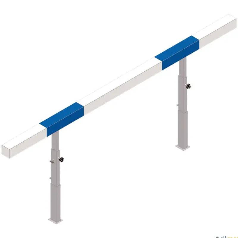 Valla obstáculo de ría Dimasport para atletismo certificada por World Athletics, con cajetines para anclar en el suelo. Las patas se introducen en los cajetines una vez anclados. Sistema seguro de doble cierre para ajuste de altura. Madera laminada pintada en 2 colores de sección 127 x 127 mm según normativa. Base robusta que brinda buena estabilidad con soportes de refuerzo para un mejor soporte de la viga. Fabricada en acero galvanizado para una mayor vida útil.