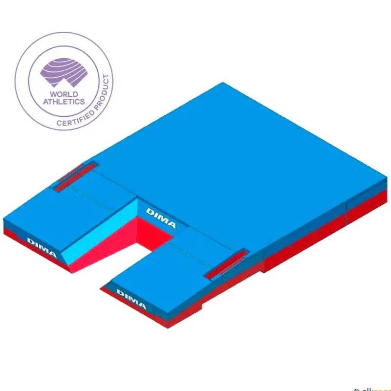 La zona de caída para salto con pértiga Dimasport International cumple con las especificaciones de World Athletics, certificado n° E-99-0076. Además, también cumple con las especificaciones nacionales de la FFA (Federación Francesa de Atletismo), certificado NF EN 12503-2 tipo 11.