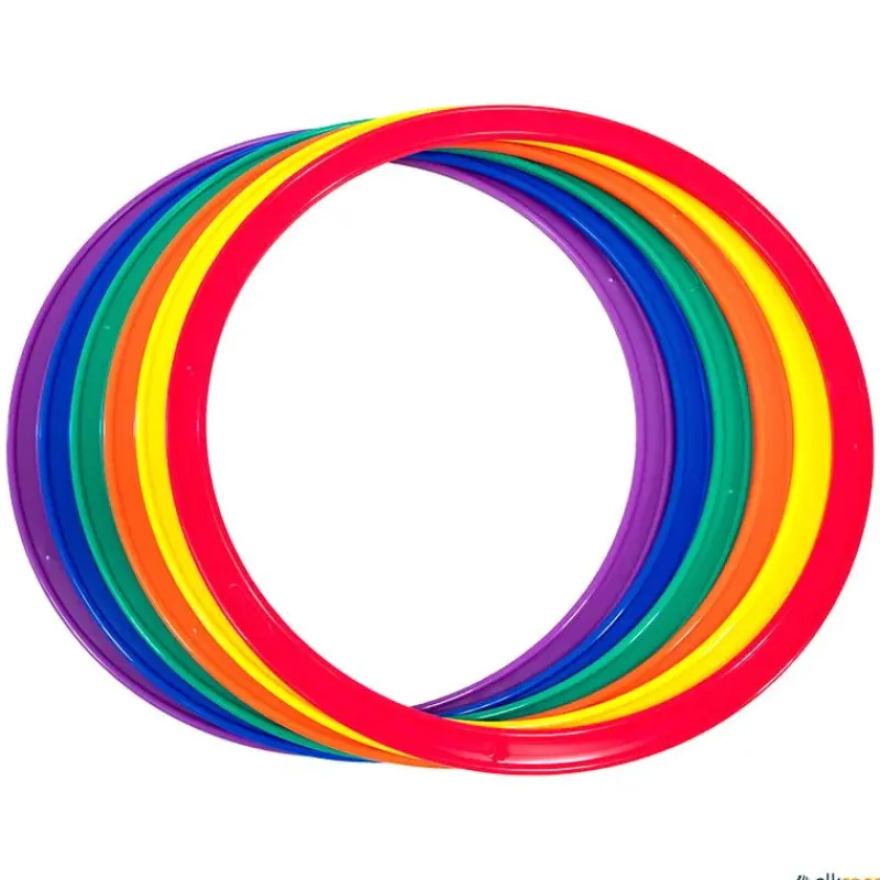 Los aros de plástico planos son un material básico para realizar toda serie de habilidades y destrezas. Se pueden acoplar a ladrillos y picas con los engarces, formando obstáculos que ayudan a trabajar actividades motoras como coordinación, agilidad, etc.