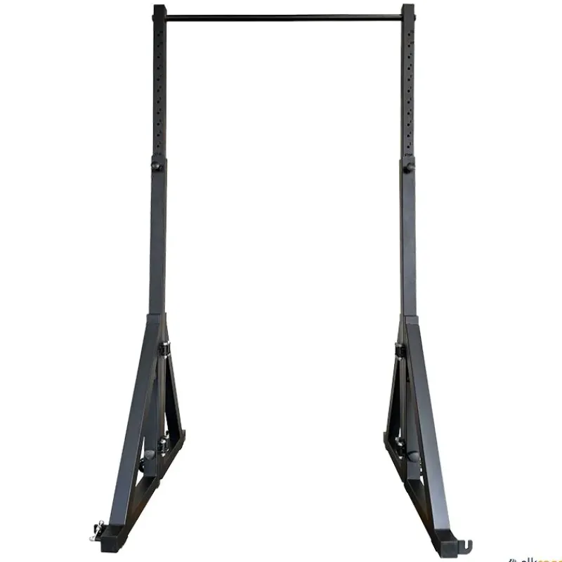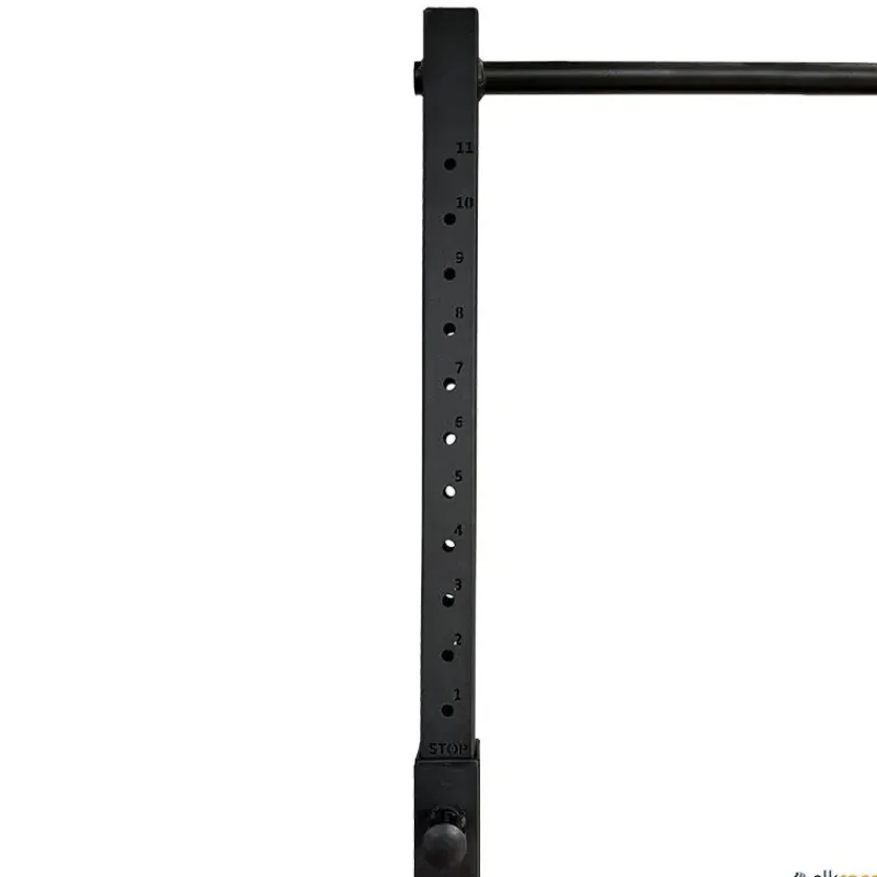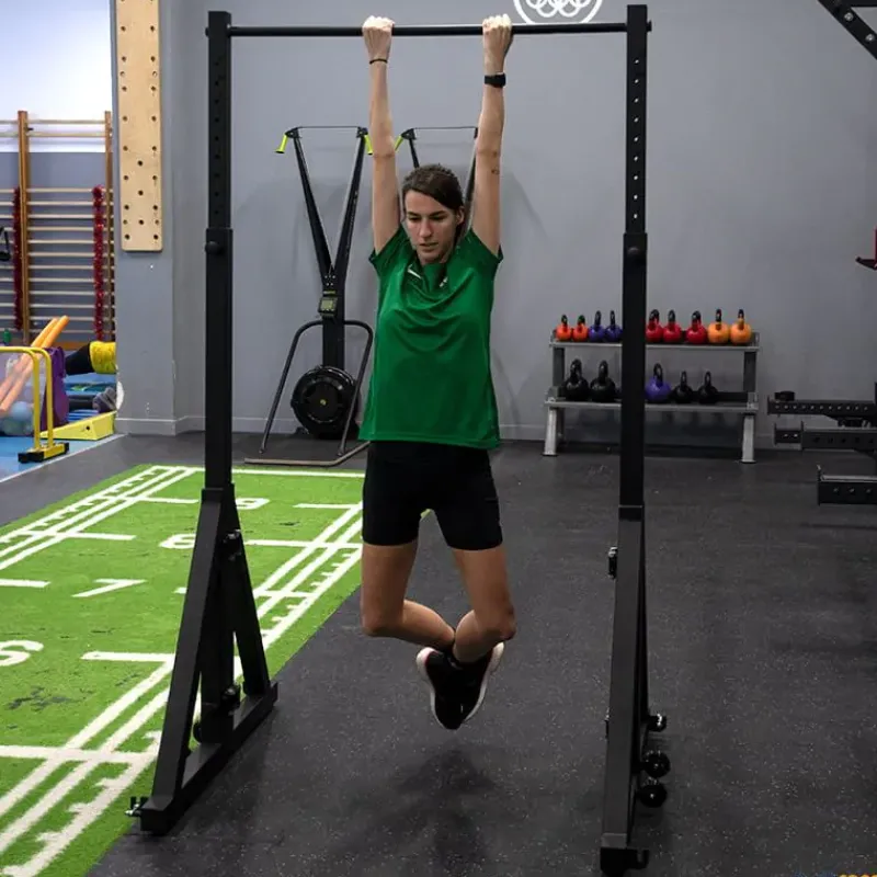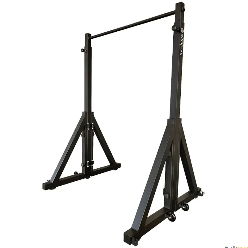 Portátil y plegable, esta barra de dominadas la puedes llevar donde la necesites. Perfecta para centros educativos o para gimnasios donde no se dispone de espacio para dejarla fija. Es fácil de montar, mover y plegar para su almacenamiento. La barra se ajusta de 158,3 a 218,3 cm en incrementos de 10 cm lo que permite ser útil para múltiples usuarios. Un indicador de STOP grabado en el marco evita el ajuste excesivo. Marco de acero pintado al polvo muy duradero, base de goma para proteger los suelos. Cuando se termine de usar, pliegue el marco y asegure las patas mediante los clips bisagras. Mediante las ruedas en el lateral de las bases se puede transportar fácilmente.