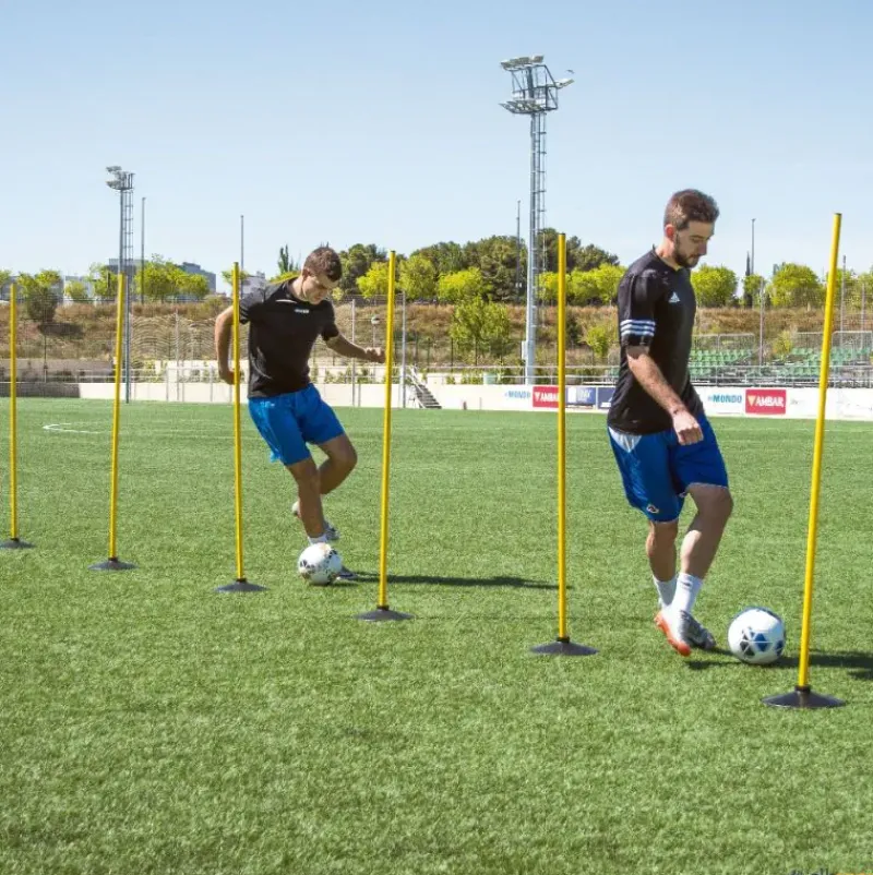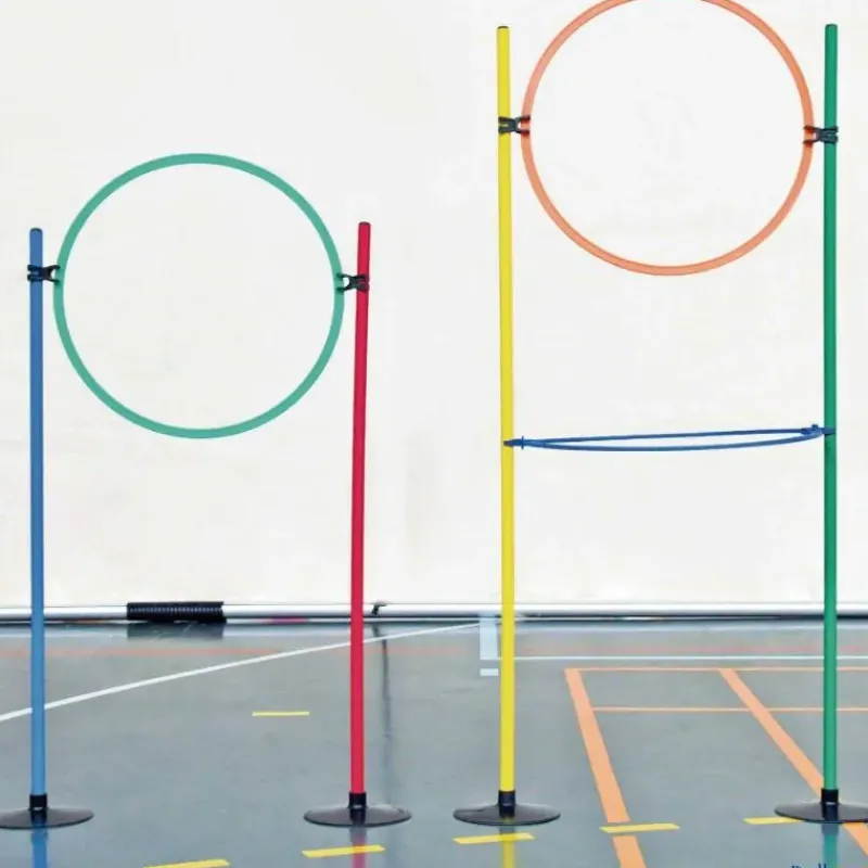 Base lastrada plana de caucho irrompible, de gran estabilidad incluso cuando el terreno de juego es un poco irregular, ideal para formar circuitos de habilidad, de precisión, etc. combinándola con picas y aros. Apta para picas de 25 mm de ø.