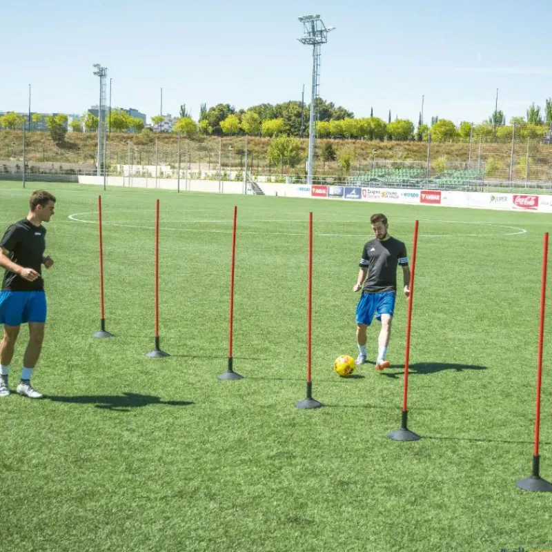 Base lastrada plana de caucho irrompible, de gran estabilidad incluso cuando el terreno de juego es un poco irregular, ideal para formar circuitos de habilidad, de precisión, etc. combinándola con picas y aros. Apta para picas de 25 mm de ø.