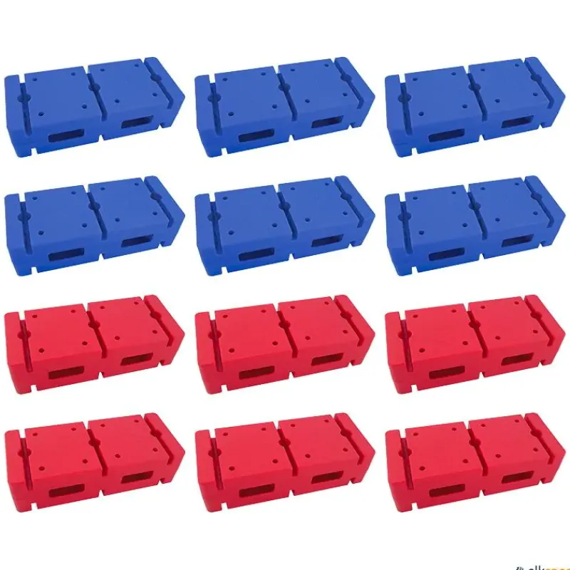 Los bloques son un material indispensable para jugar a Launchball. Para equipar nuestro terreno de juego necesitaremos 12 bloques (6 azules y 6 rojos), estos 12 bloques ocuparán cada una de las 12 bases que se deben derribar durante el juego.