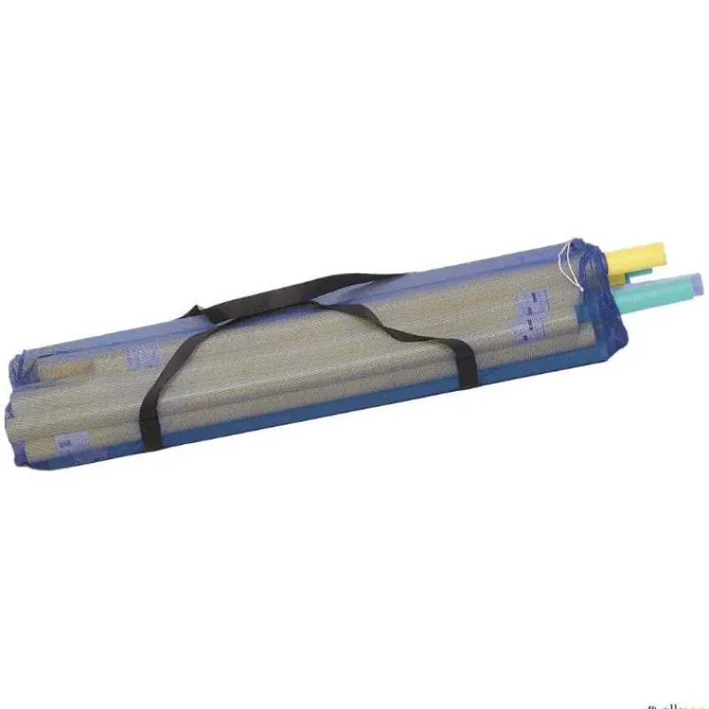 Bolsa para almacenar y transportar churros de piscina. Fabricada en malla de poliéster, con cierre en uno de sus extremos y asas para su transporte.