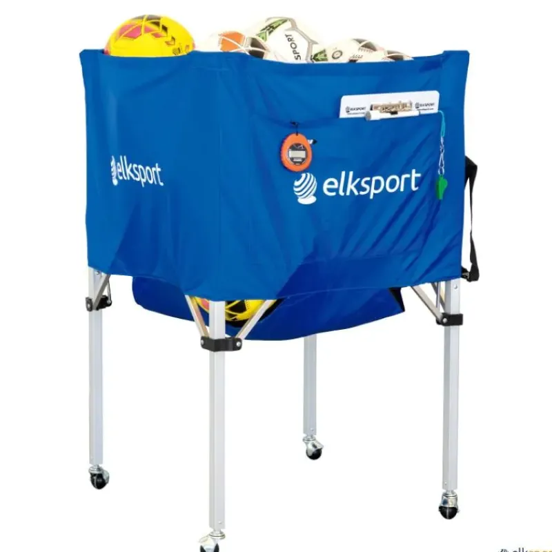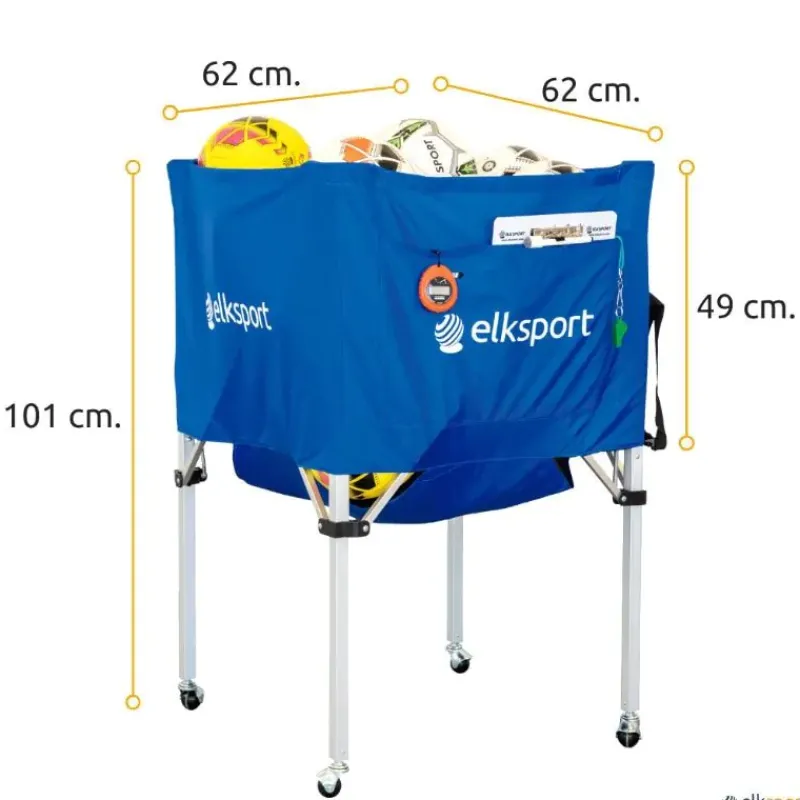 Pensado para transportar y almacenar balones durante el entrenamiento. En lona de nailon y estructura de aluminio. Completamente plegable. Con bolsillo lateral y bolsa para su almacenaje y transporte. El carro es una estructura única, las patas no se separan.