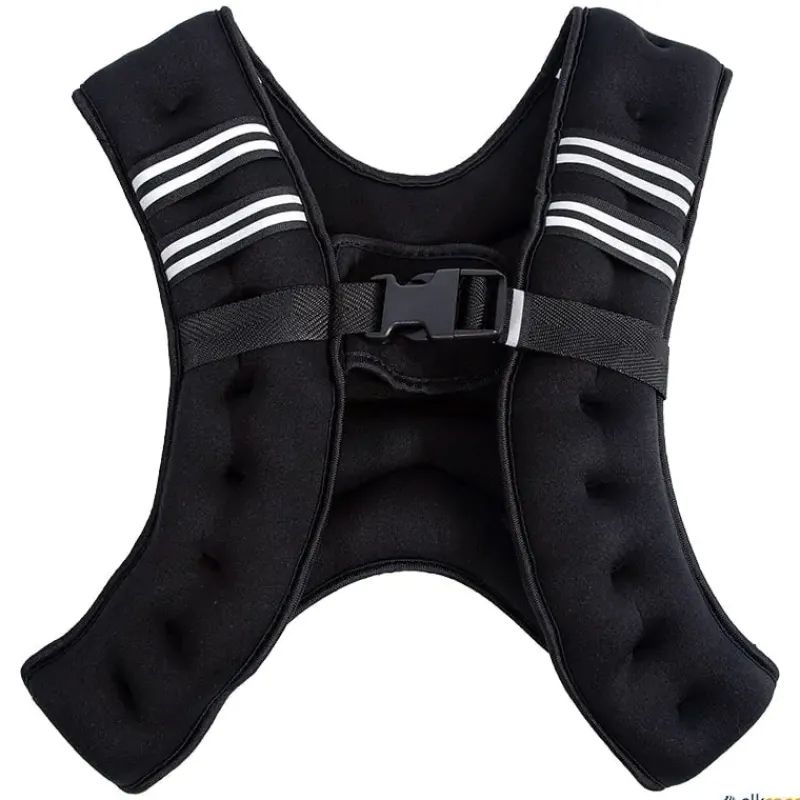 Chaleco de neopreno lastrado de arena muy cómodo de llevar. Para entrenamientos de fuerza y velocidad. Con tiras reflectantes y hebilla regulable para un ajuste perfecto y un cómodo bolsillo de almacenamiento en la parte trasera.