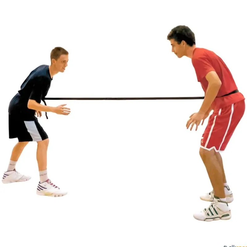 Un deportista sigue los movimientos de su compañero sin que las piezas de velcro se separen. Excelente para trabajar ejercicios de velocidad de reacción, agilidad, cambios de dirección, coordinación de movimientos, equilibrio, ejercicios de defensa, etc.