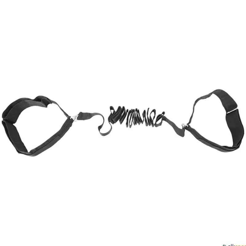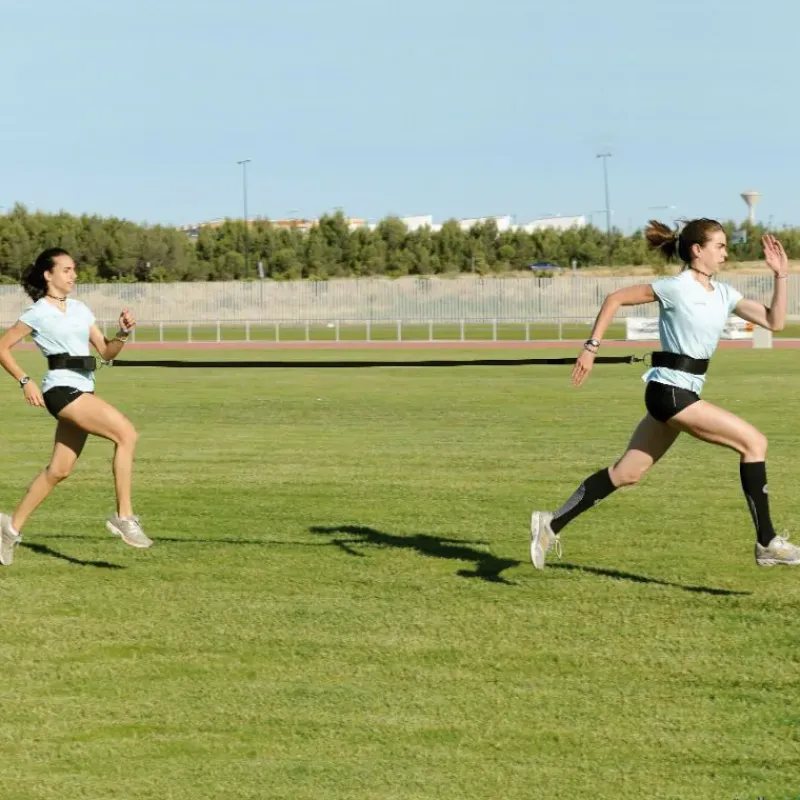 Doble cinturón de resistencia para un trabajo conjunto de 2 deportistas. Cinturones ajustables con velcro unidos por una cinta de nailon. La resistencia creada ayuda a mejorar la fuerza y velocidad durante la carrera o cambios de dirección. Incluye bolsa de rejilla con cierre para un fácil y cómodo almacenaje.