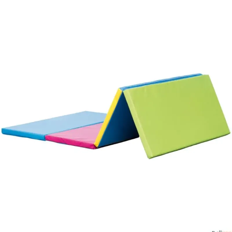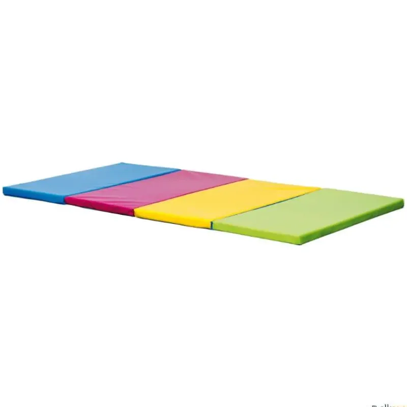 Colchoneta plegable en varios colores, con posibilidad de unir unas con otras mediante velcro. Fácil almacenaje. Los colores dan referencia de distancias tanto a los alumnos como al profesor, para muchas de las actividades donde hay que situar una colchoneta de recepción, saltos, volteretas, etc.