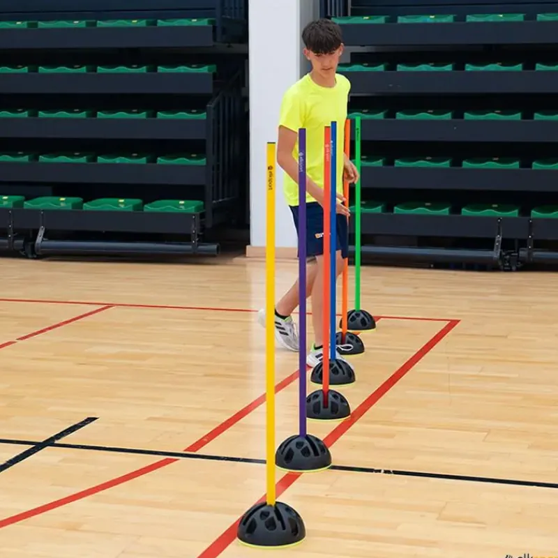 Conjunto de bases y picas perfecto para circuitos, juegos de coordinación y ejercicios de velocidad, este conjunto está pensado para Educación Física en colegios.