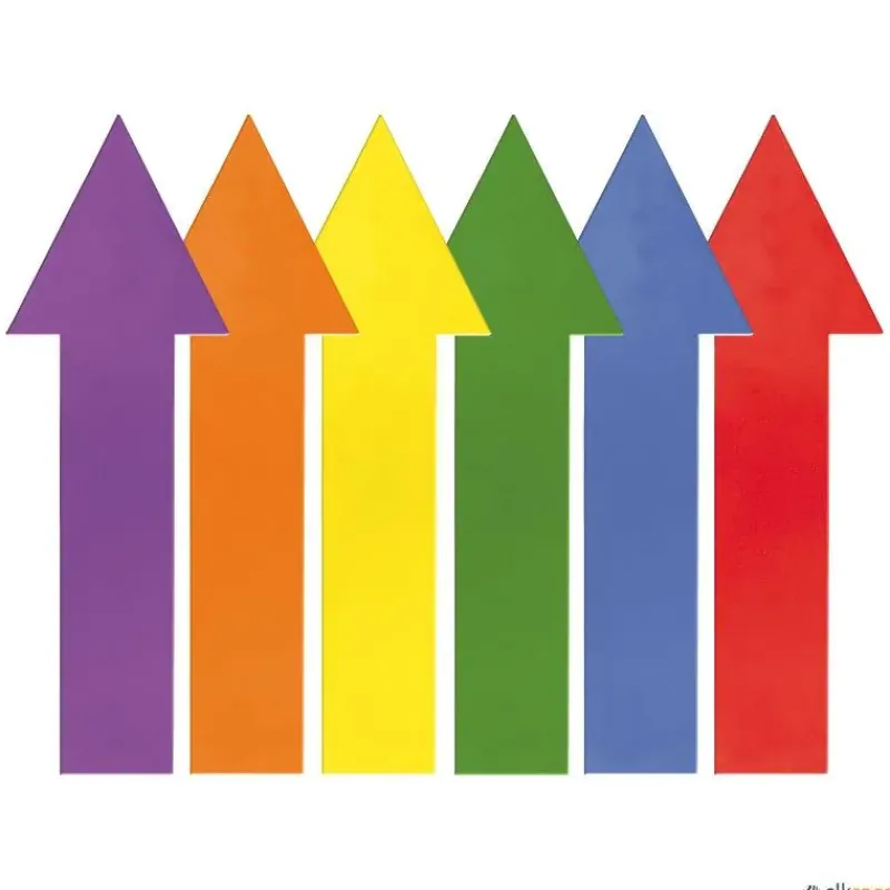 · Conjunto formado por 6 flechas en 6 colores: amarillo, azul, naranja, rojo, verde, y violeta.