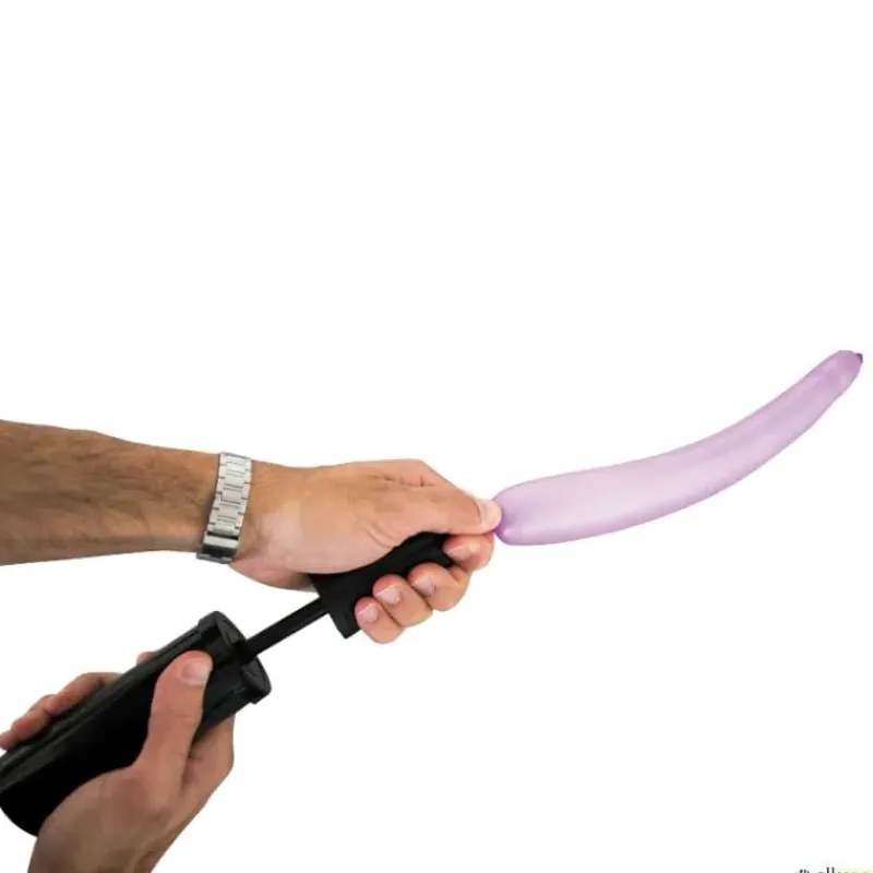Fantástica bomba de doble acción para balones, globos y otros materiales que no tengan válvula de cierre automático. Su doble acción le permite hinchar al subir y bajar el émbolo.
