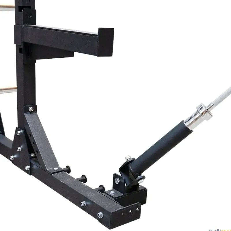 · 8 Soportes (4 por lado) de almacenamiento para discos olímpicos y Bumper Plates.