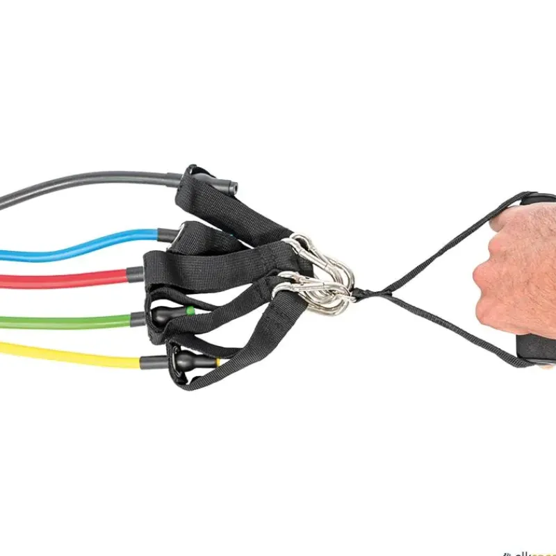 Este kit de elásticos sin forrar te permite realizar una gran cantidad de ejercicios y entrenamientos. Con el kit de elásticos es posible realizar un entrenamiento completo y trabajar todos los grupos musculares de modo sencillo y eficaz.