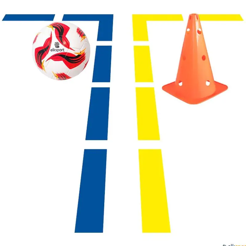 Estos elementos eliminan las líneas pintadas en el terreno de juego. En caucho de alta calidad, base rugosa, mayor adherencia (garantía antiderrapes). Dan la posibilidad de crear vuestro propio terreno de juego donde quiera y con las dimensiones deseadas. Por otra parte serán bienvenidas en espera de que el suelo sea pintado con las dimensiones reglamentarias.