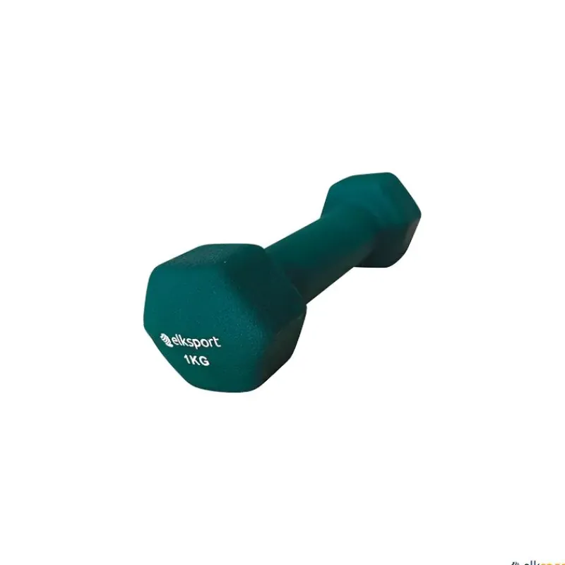 Par de mancuernas hexagonales fabricadas en hierro recubiertas de neopreno, material agradable al tacto, de gran confort y muy duradero.