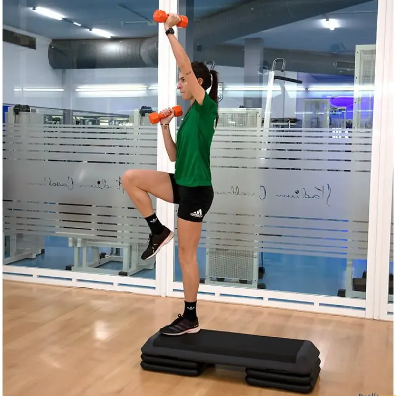 · 7 Pesos disponibles: 0,5 kg (rojas) / 1 kg (verdes) / 1,5 kg (azules) / 2 kg (amarillas) / 3 kg (naranjas) / 4 kg (violetas) / 5 kg (negras).