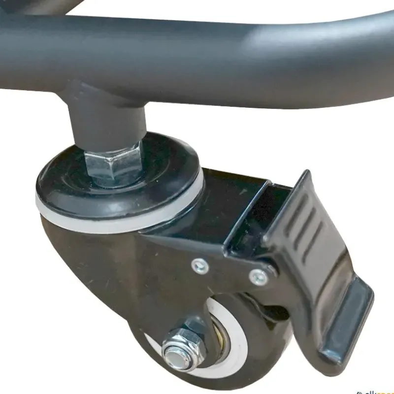Válido para las plataformas sin pies (no incluidas en el mueble) del step profesional. Equipado con 4 ruedas de 7,6 cm de ø, 2 de ellas con freno y 2 sin freno.