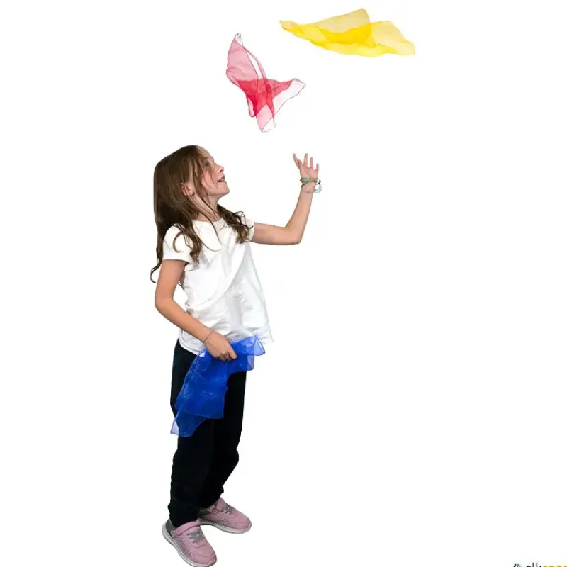 Los pañuelos malabares también pueden usarse para actividades expresivas, clases de Educación Física, lecciones de baile y gimnasia de centros deportivos o de tiempo libre. La manipulación de los pañuelos malabares es un medio para desarrollar en nuestros alumnos habilidades motoras de forma creativa. Fabricados en nailon superligero y en colores atractivos.