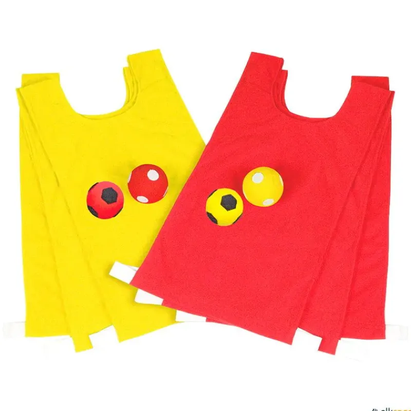 Petos diana con una superficie exterior donde se puedan adherir las pelotas de velcro. Esto posibilita muchas actividades y juegos de precisión, en estático, o en movimiento, individualmente o en equipos.