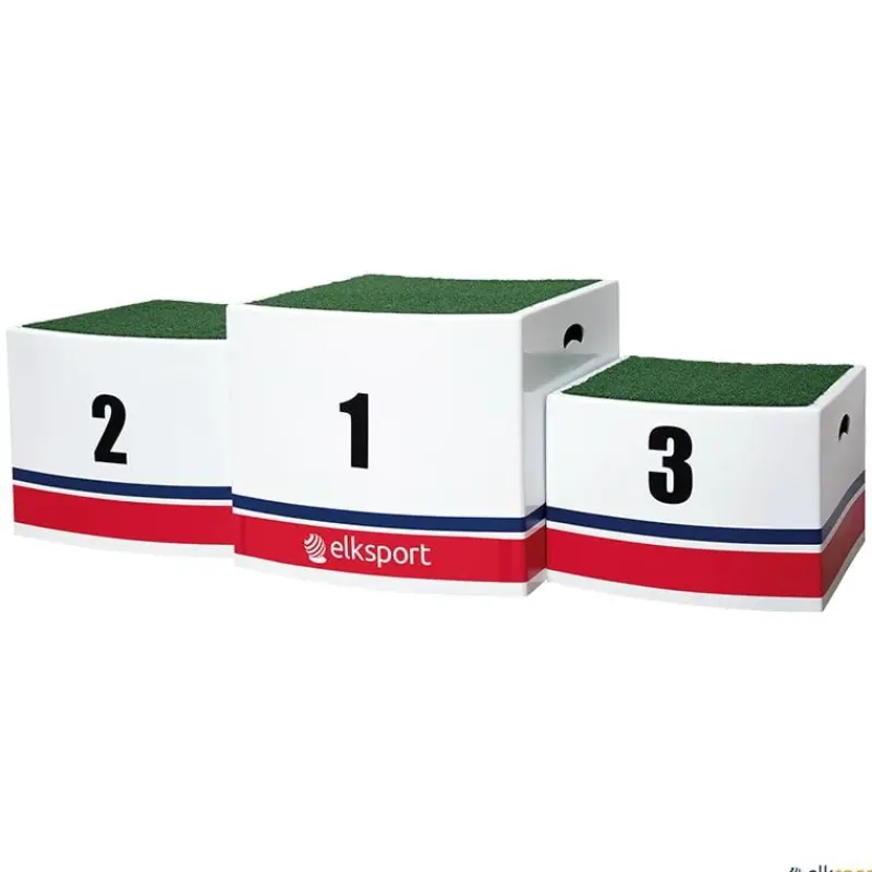 Pódium fabricado en fibra de vidrio, con una superficie superior en césped artificial. Los soportes se apilan, uno dentro de otro para facilitar el almacenamiento y el transporte.