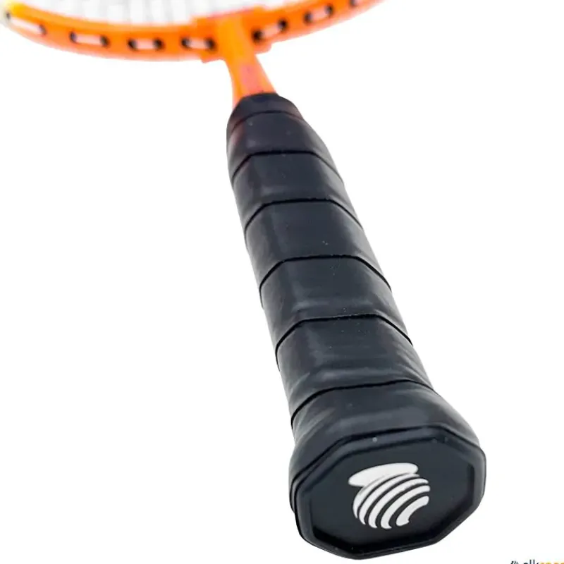 Raqueta de bádminton para iniciación. Fabricada en aluminio con un marco sobredimensionado en forma de gota y mango muy corto.