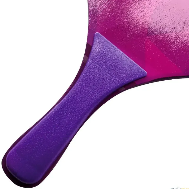 Raquetas fabricadas en madera Poplar, lo que les hace ser más resistentes que las convencionales. Permite jugar con la clásica pelota de goma, que les acompaña, o incluso con otras de mayor dimensión y peso como las de espuma, pelotas cometa, etc. No usar con pelotas de tenis.