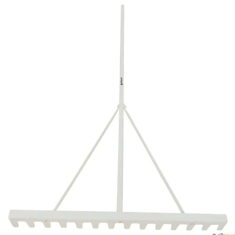 Rastrillo para la arena del foso de atletismo. Con mango metálico redondo que proporciona mayor alcance y resistencia durante el uso. Su base de acero es ideal para facilitar el rastrillado eficiente del foso.