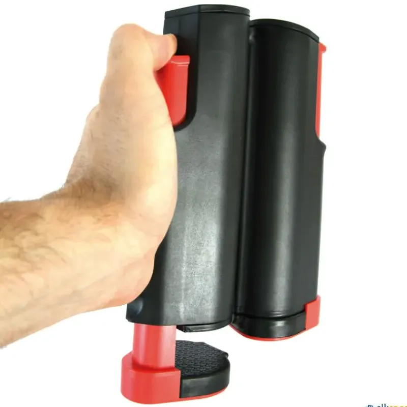 Red diseñada para jugar al tenis de mesa en cualquier lugar, en todo tipo de mesas o superficies planas. Se sujeta en segundos mediante unas pinzas que se pueden fijar en mesas de hasta 5 cm de grosor. Muy fácil de recoger y transportar.