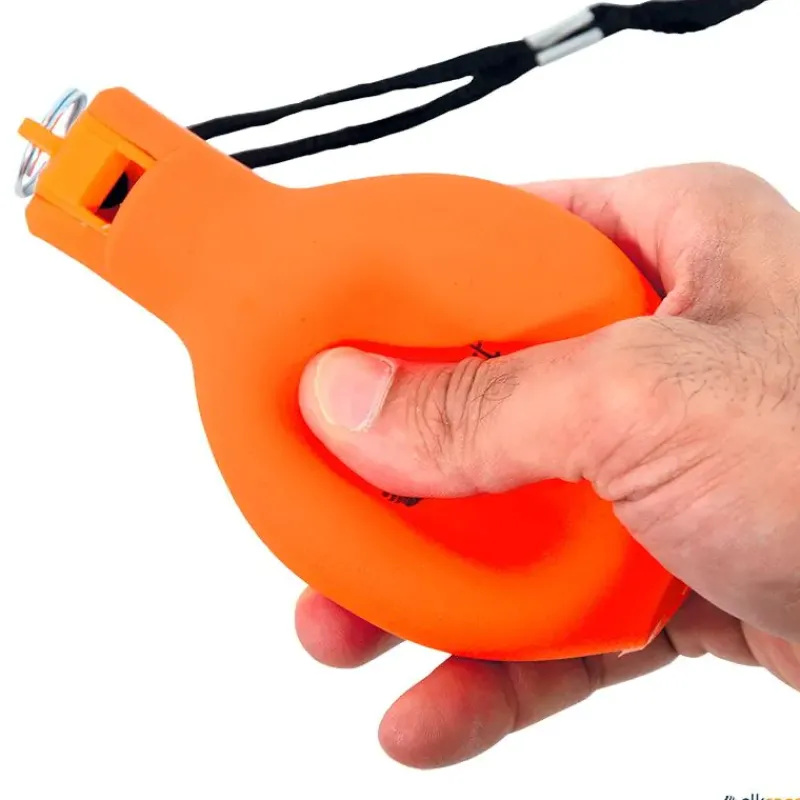Fabricado en PVC resistente, este silbato es duradero y cómodo de usar. Incluye cordón para llevarlo colgado y está disponible en 6 colores diferentes para adaptarse a cualquier preferencia.