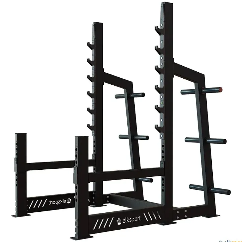 El squat rack profesional incorpora 6 puntos de soporte de barra inicio/final, fabricados en PU para una colocación silenciosa y segura de la barra olímpica. Niveles de seguridad ajustables en altura para la seguridad del usuario. Incorpora 12 soportes para almacenamiento de discos olímpicos ideales para almacenar todas las configuraciones de discos de peso. Barra y discos no incluidos.