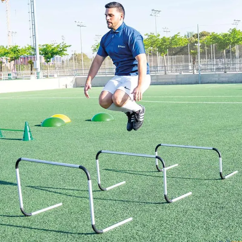 Una de las mayores pérdidas de tiempo en las tareas donde se utilizan vallas, es colocarlas de nuevo en su posición cuando se han derribado. La valla basculante vuelve sola a su posición inicial después de golpearla, esto es debido a la distribución del peso de la valla. Las partes de apoyo pueden girar hacia el interior para un transporte y almacenaje perfectamente plano. Fabricada en aluminio, prácticamente irrompible.