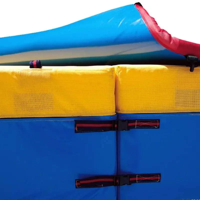 Zona de caída para salto de altura fabricada en 3 módulos más manta antipuntas, para su fácil manejo y transporte. Salida de aire por la parte superior e interiormente en todos los módulos. Opción de rotulación en todo el conjunto.