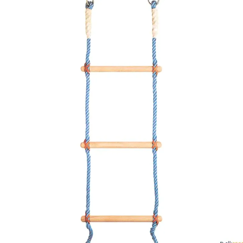Escalera de trepa con peldaños en madera de haya y cuerda de nailon.