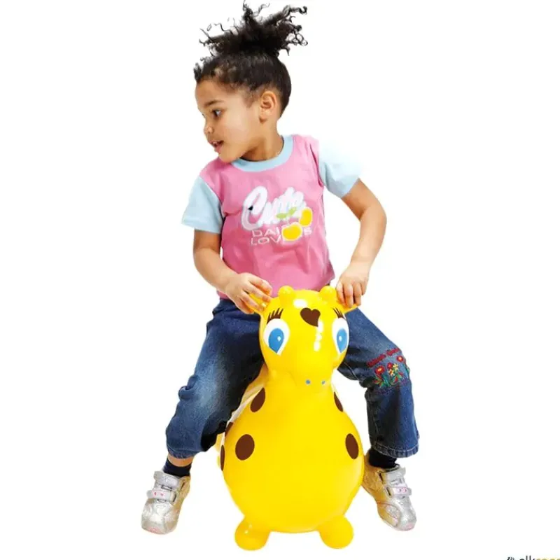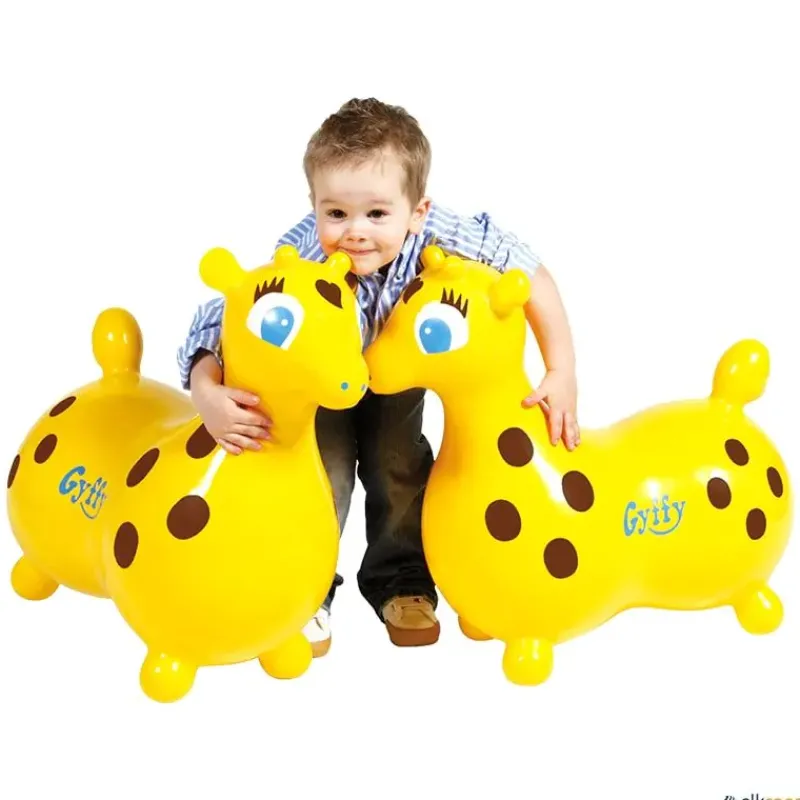 La jirafa Gyffy de Gymnic es un instrumento ideal para centros educativos como instrumento psicomotriz, se puede saltar con él como con las pelotas canguro. La jirafa Gyffy es un juego para niños divertido y relajante, además estimula las relaciones entre los alumnos. Los niños disfrutarán de su uso gracias a las formas redondeadas y su suavidad y elasticidad. Se hincha dependiendo de la edad y tamaño del niño.