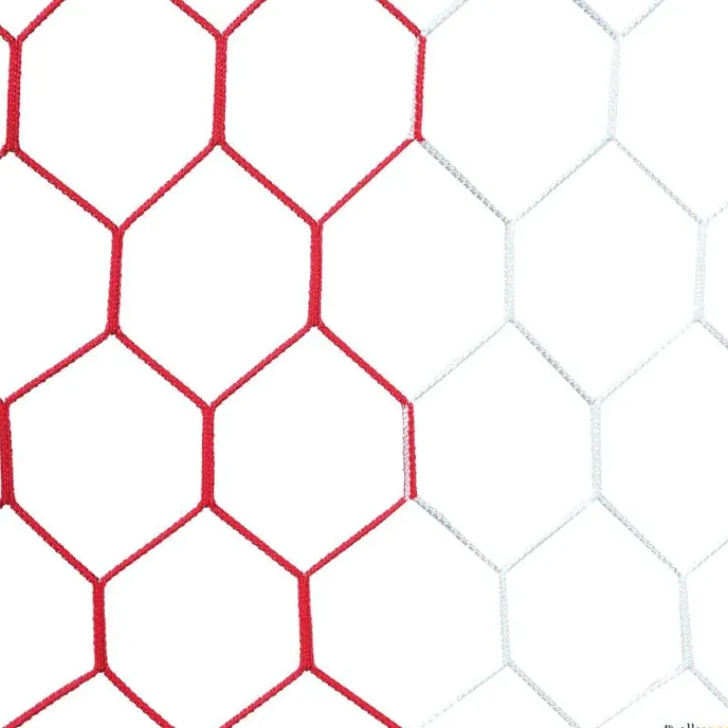 Nuestras redes hexagonales bicolor tipo cajón Línea Oro para porterías de fútbol cumplen con todos los requisitos de la norma EN 748. Tamaño de malla no superior a 120 mm. Diámetro de la trencilla superior a 2 mm. Con cuerda tensora en el arquillo superior trasero para mejorar la sujeción de la red a la portería y evitar desplazamientos. Todas las redes de fútbol están fabricadas en materiales resistentes a los rayos UV así como a la agresividad atmosférica. Disponibles en varios colores. Posibilidad de hacer redes a medida.