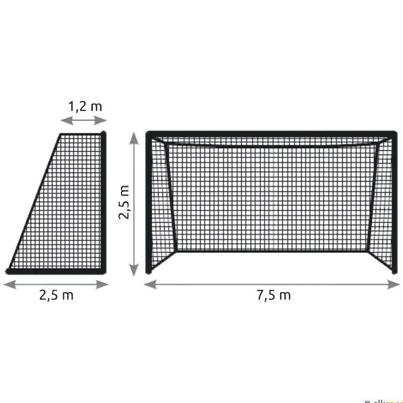 Nuestras redes bicolor Línea Oro para porterías de fútbol cumplen con todos los requisitos de la norma EN 748. Tamaño de malla no superior a 120 mm. Diámetro de la trencilla superior a 2 mm. Con cuerda tensora en el arquillo superior trasero para mejorar la sujeción de la red a la portería y evitar desplazamientos. Todas las redes de fútbol están fabricadas en materiales resistentes a los rayos UV así como a la agresividad atmosférica. Disponibles en varios colores. Posibilidad de hacer redes a medida.