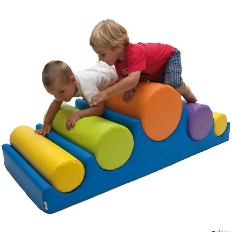 Conjunto de 6 piezas de espuma forrada cosidas, 5 de ellas cilindros y 1 gran base.