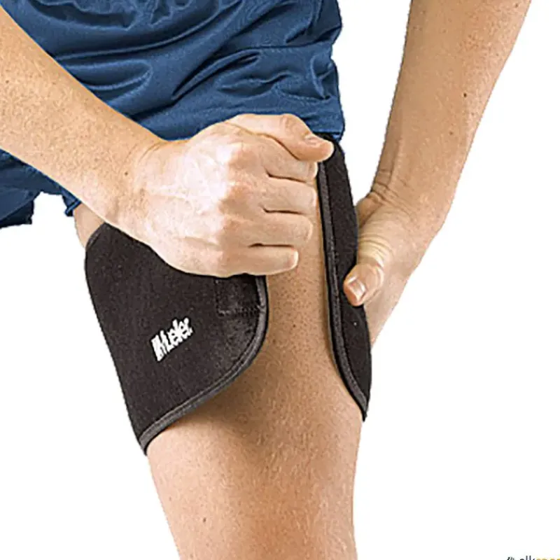 Muslera ajustable de neopreno Mueller con forma anatómica y cierre de velcro que permite ajustarse a contornos de muslos muy distintos.