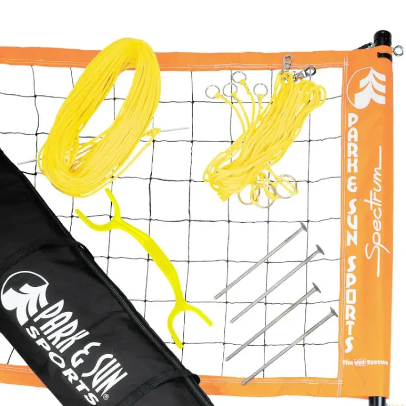 Conjunto de postes de vóley playa transportables sólidos y de fácil utilización. El conjunto comprende: