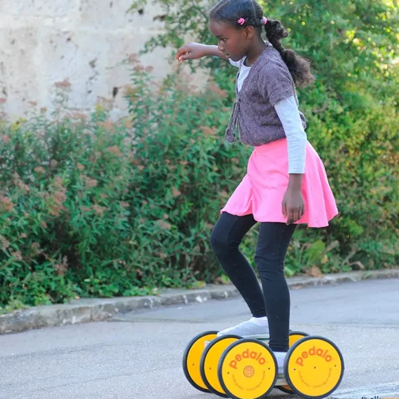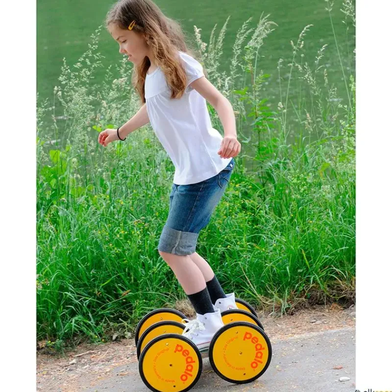 El Pedalo Classic está formado por grandes ruedas dobles e incorpora dos plataformas de gran tamaño para colocar los pies, antideslizantes e impermeables, con espacio suficiente para que adultos y niños puedan desarrollar actividades y juegos. El Pedalo Classic es un instrumento fundamental para entrenar el equilibrio con pedales. Ideal para su uso en espacios interiores y exteriores.