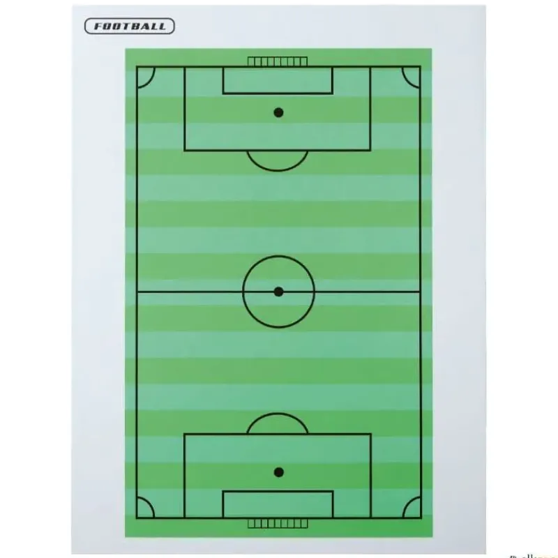 Esta pizarra táctica borrable para fútbol se adhiere mediante carga estática a superficies lisas como ventanas, puertas, paredes de vestuario, etc. No incluye rotulador ni imanes.